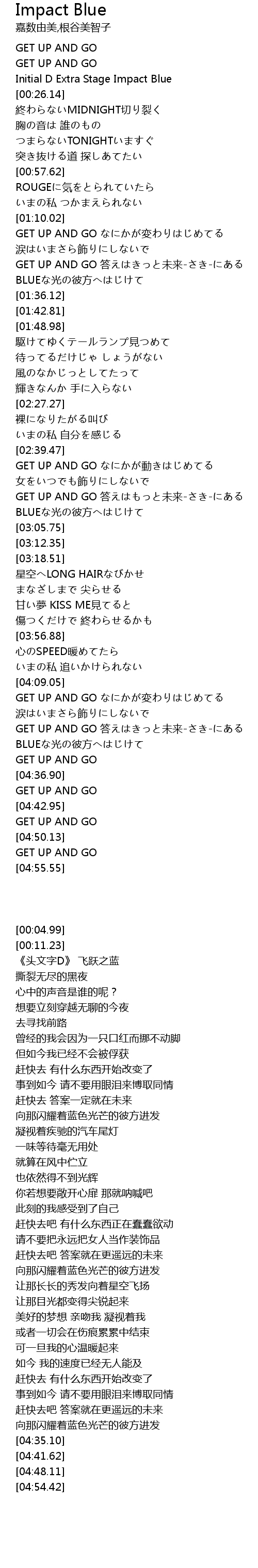 | [04:09.45] | GET UP AND GO なにかが変わりはじめてる |