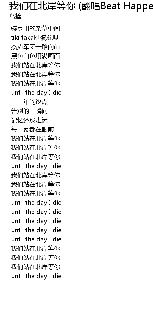 | Song | 我们在北岸等你 (翻唱Beat Happening) |