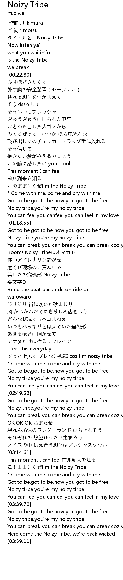 | [01:03.05] | このままいくぜI'm the Noizy Tribe |