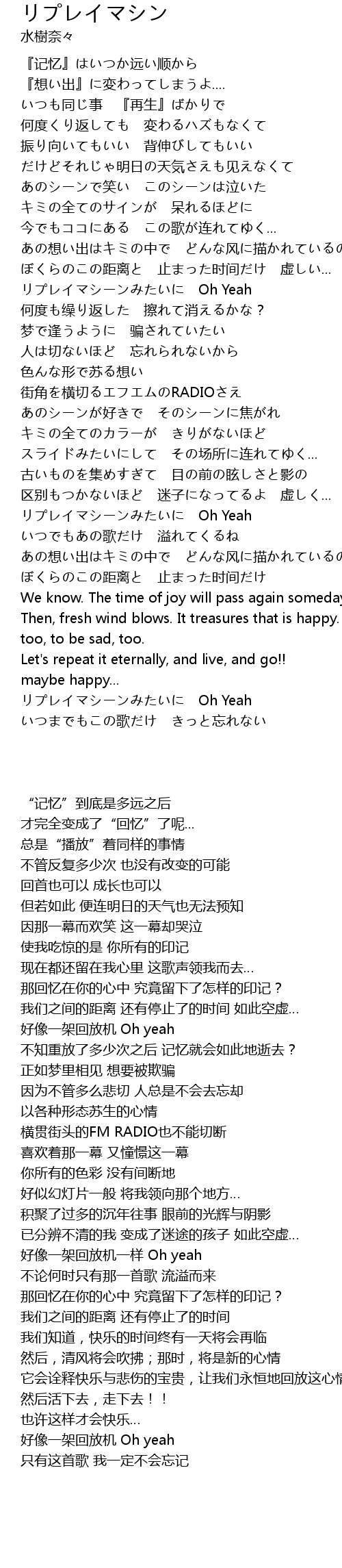 | [04:14.35] | リプレイマシーンみたいに Oh Yeah |