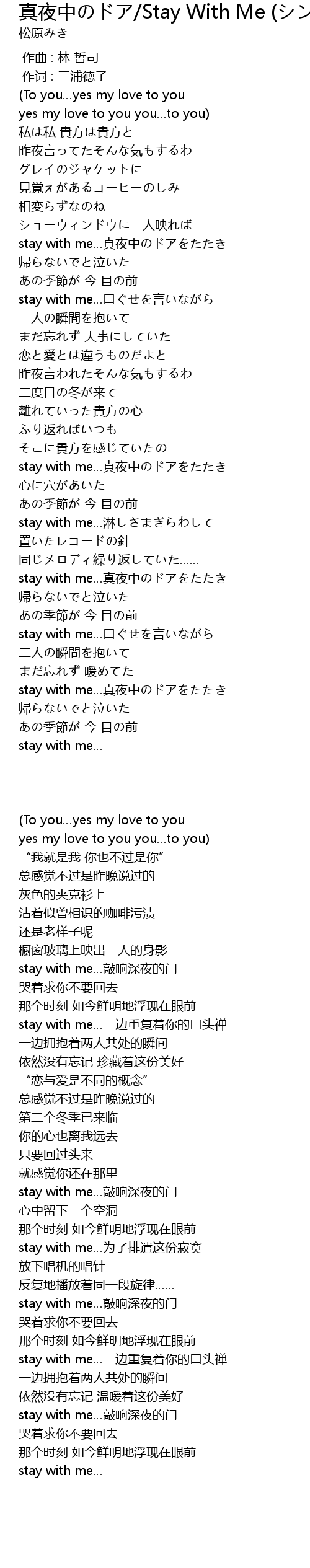 | [03:22.489] | stay with me…真夜中のドアをたたき |