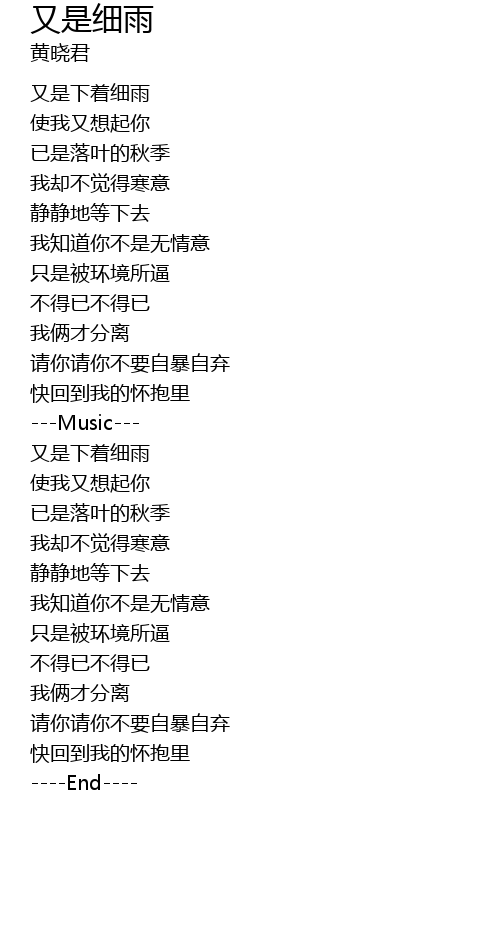 | [01:47.79] | 又是下着细雨 |
