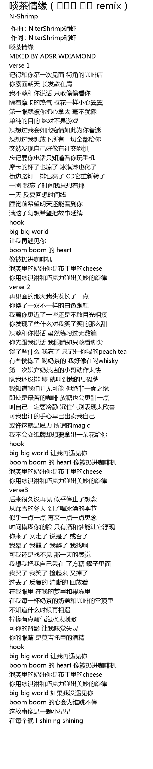 | [03:20.652] | big big world ru guo wo mei yu jian ni |