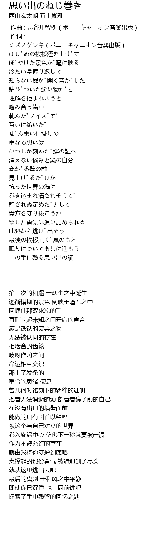 | [01:37.706] | いつしか刻んだ絆の証へ |