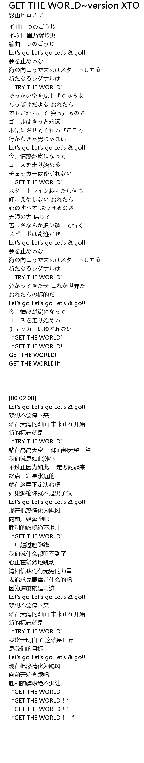 | [02:07.90] | Let' s go Let' s go Let' s go!! |