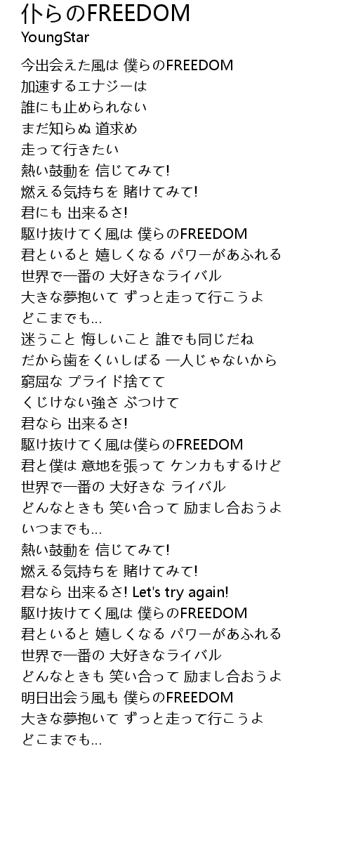 | [00:02.500] | 今出会えた風は 僕らのFREEDOM |