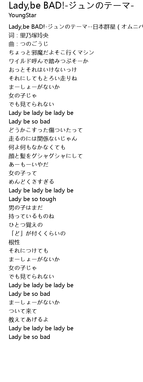 | [00:00.302] | Lady, be BAD! ri ben qun xing |