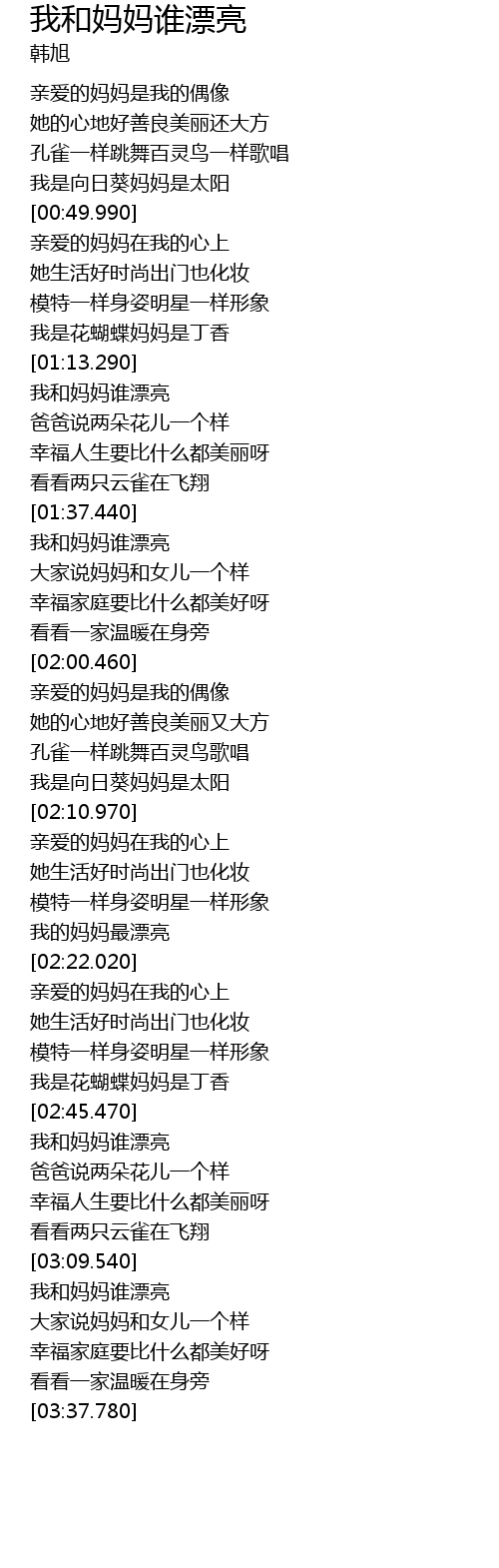 | [01:37.730] | 我和妈妈谁漂亮 |