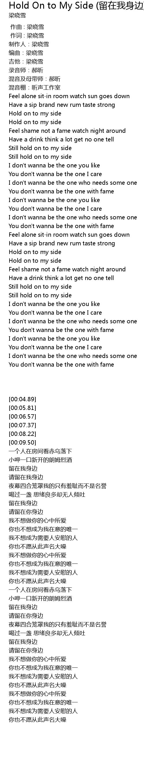 | [00:04.89] | 制作人:梁晓雪 |