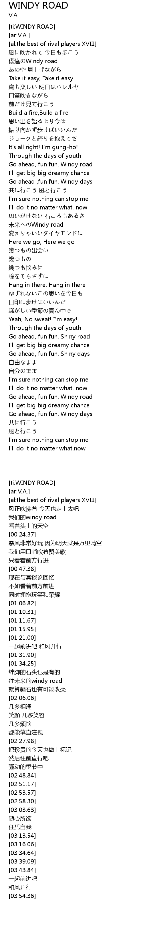 | [03:34.64] | Go ahead, fun fun, Windy road |