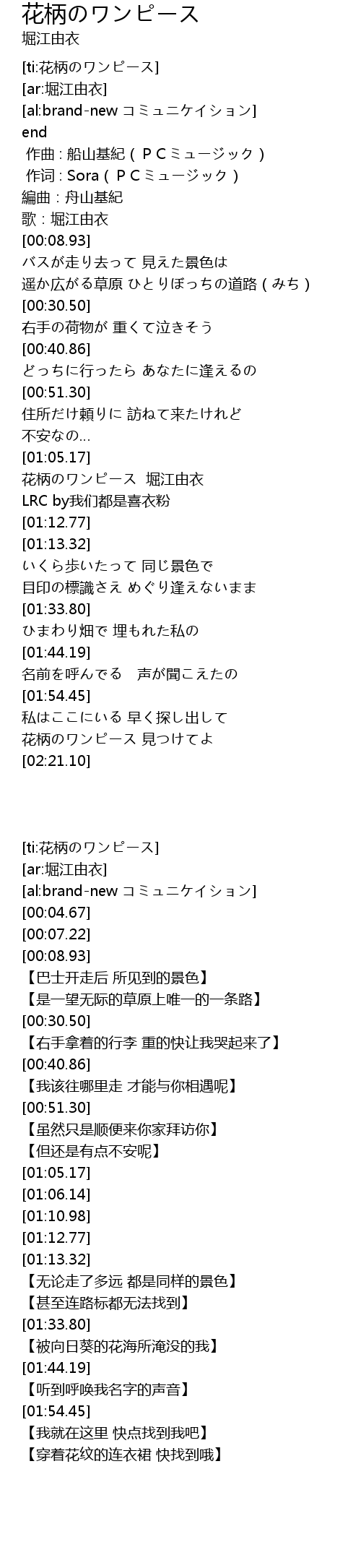 | [02:19.31] | 花柄のワンピース 見つけてよ |
