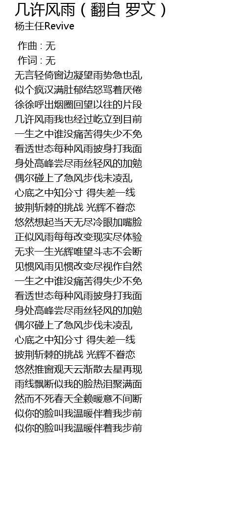 | [00:50.975] | 看透世态每种风雨披身打我面 |