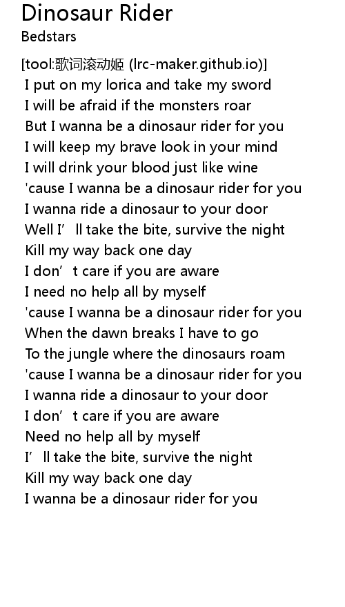 | [01:44.152] | 'cause I wanna be a dinosaur rider for you |