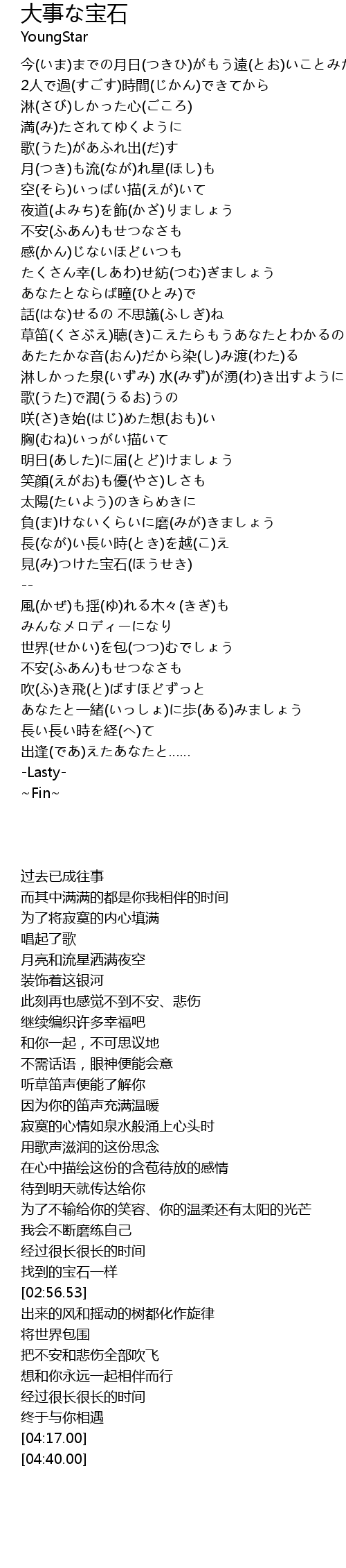 | [02:49.03] | 見(み)つけた宝石(ほうせき) |