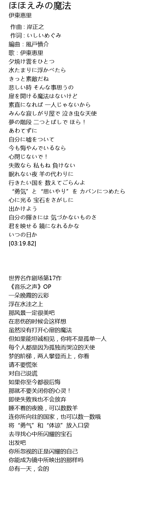 | Song | ほほえみの魔法 |