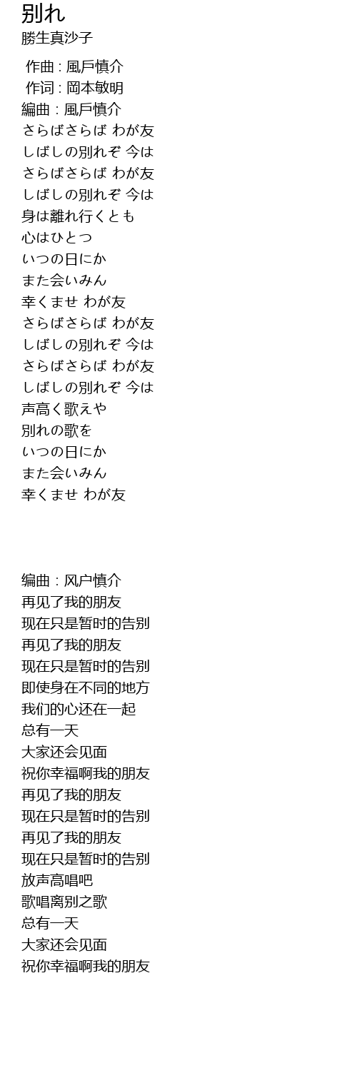 | [00:41.449] | さらばさらば わが友 |