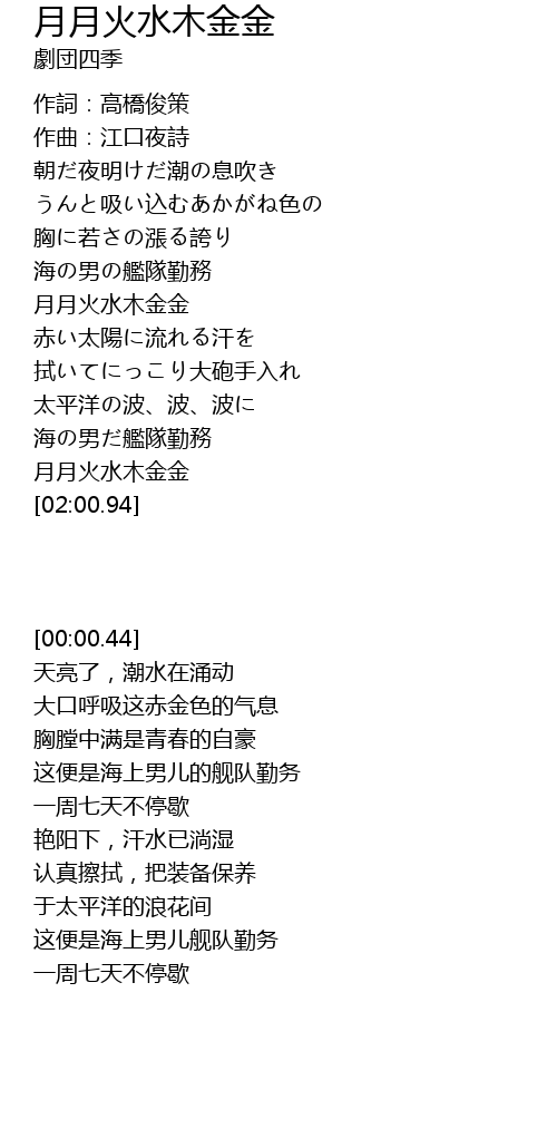 | [01:51.19] | 海の男だ艦隊勤務 |
