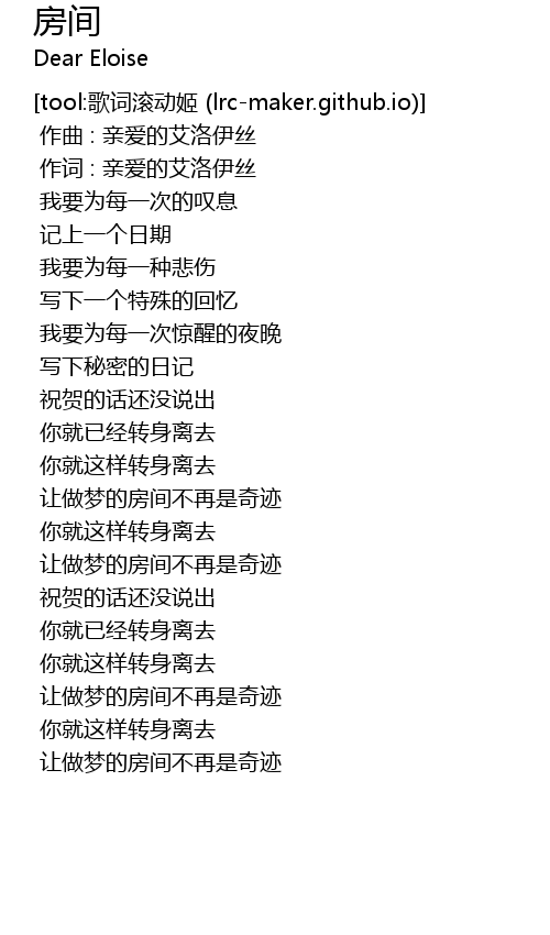 | [00:01.000] | 作词 : 亲爱的艾洛伊丝 |