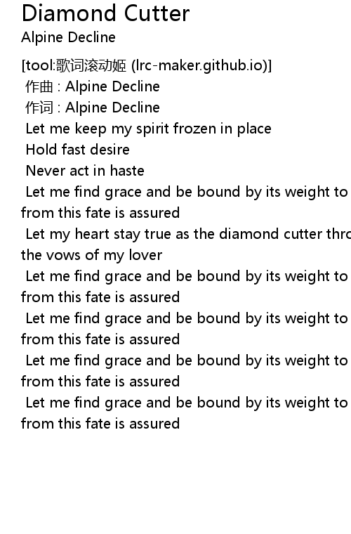 | [01:31.669] | Let my heart stay true as the diamond cutter through a drop of dew, the vows of my lover |