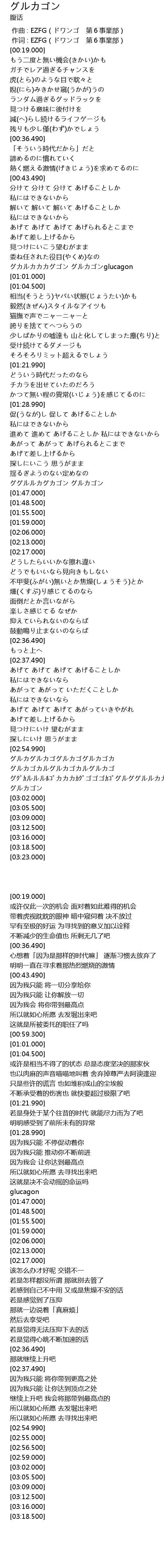 | [02:56.500] | グルカゴカルグルカゴカルグルカゴ |