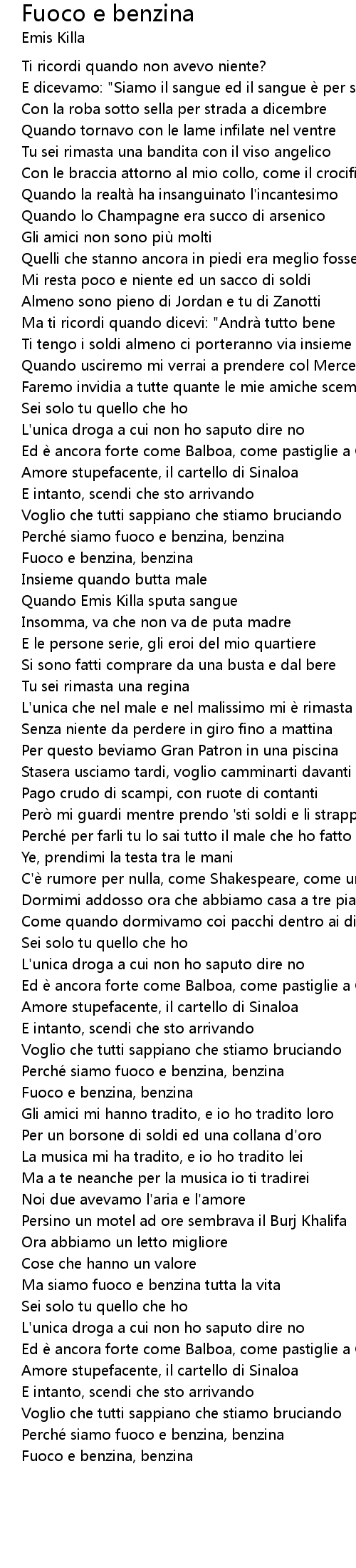 | Song | Fuoco e benzina |