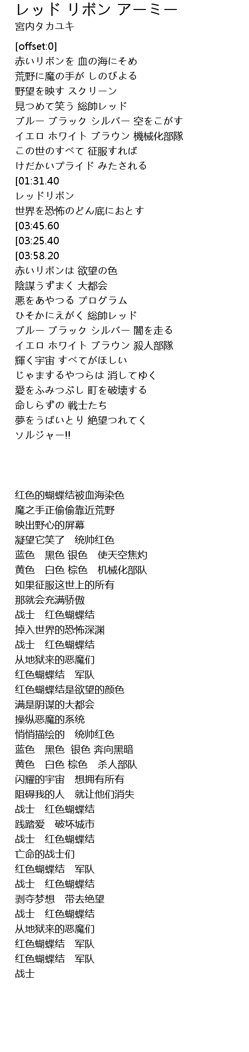| [01:38.60][03:25.40][03:49.20][03:51.60] | レッドリボン アーミー |