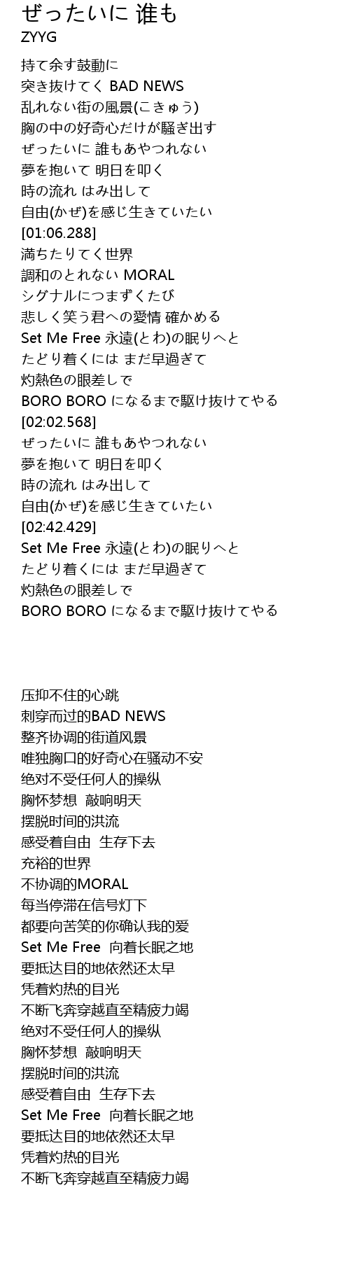 | [02:43.530] | Set Me Free yǒng yuǎn mián |