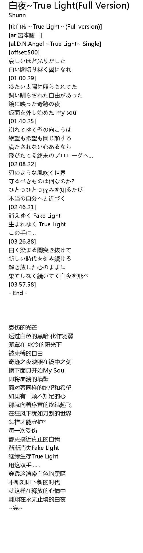 | [00:51.91] | 白い闇切り裂く翼になれ |
