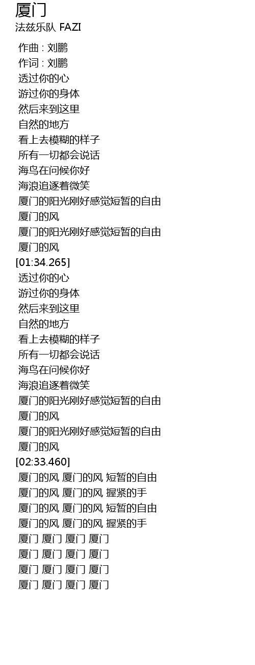 | [02:57.911] | 厦门的风 厦门的风 短暂的自由 |