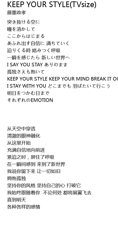 | [00:42.70] | KEEP YOUR STYLE KEEP YOUR MIND BREAK IT OUT |