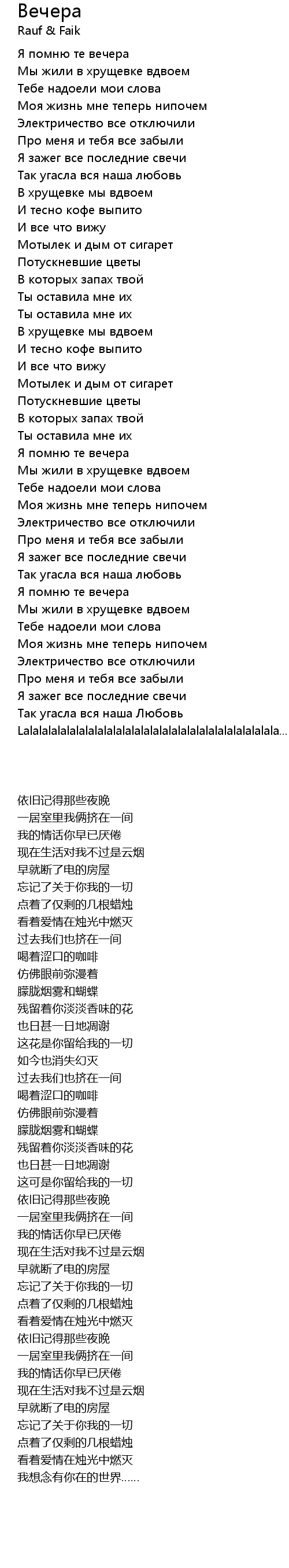 Вечера  Lyrics