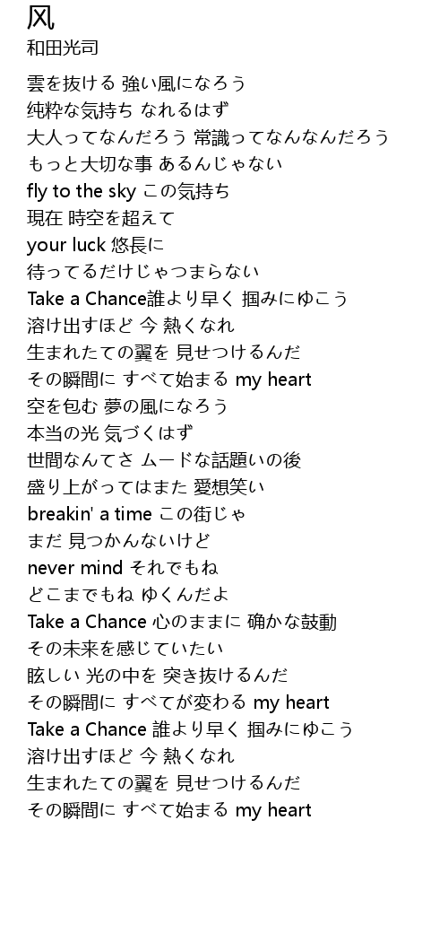 | [02:02.15] | Take a Chance 心のままに 确かな鼓動 |