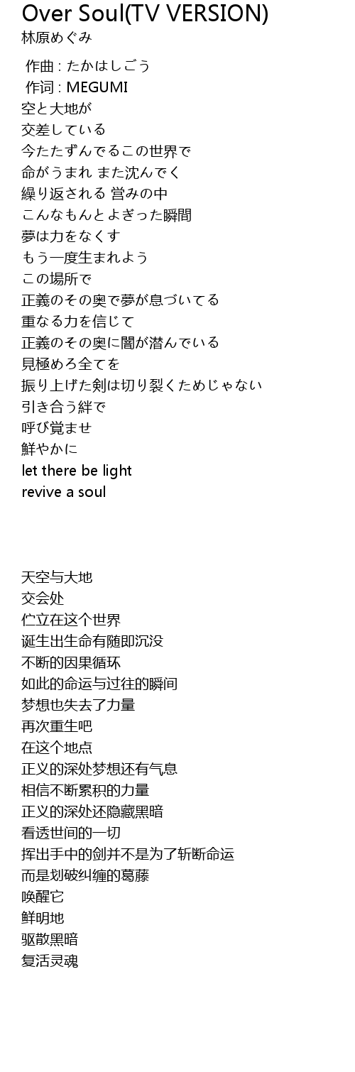 | [00:55.48] | 振り上げた剣は切り裂くためじゃない |