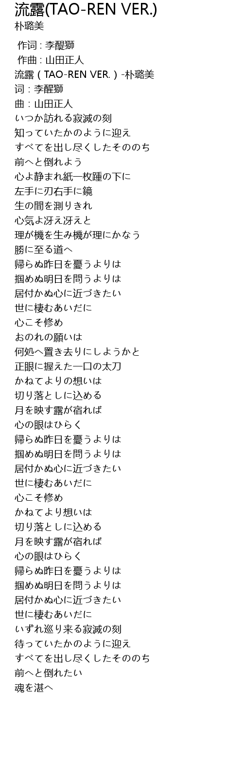 | [00:00.206] | 流露(TAO-REN VER.)-朴璐美 |