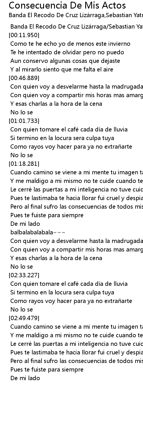 | [01:48.812] | Pero al final sufro las consecuencias de todos mis actos |