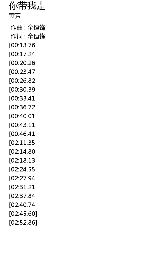 | [02:57.30][02:11.35][00:52.42] | 你带我走 你带走我 |