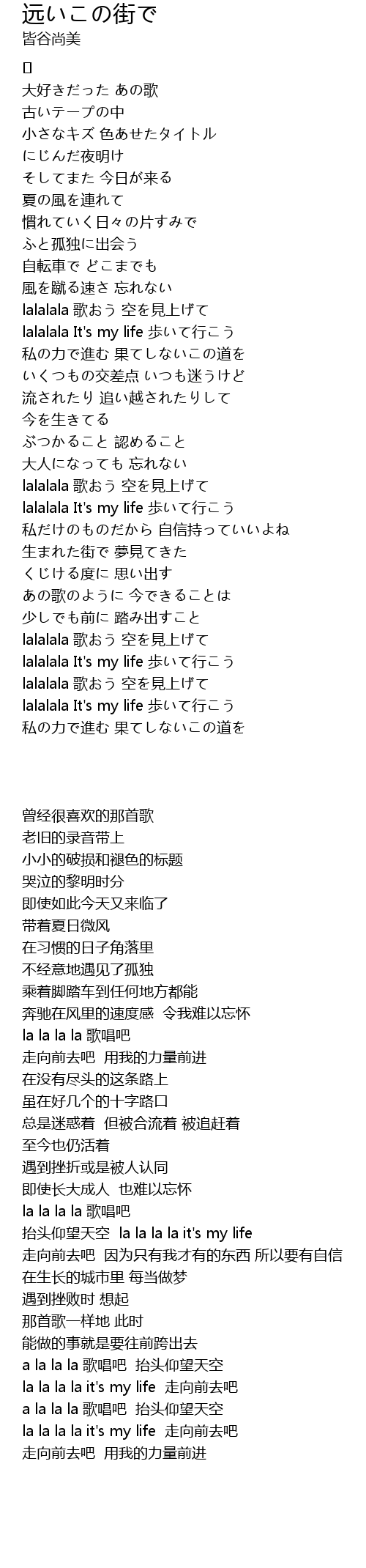| [04:02.210] | lalalala It's my life 歩いて行こう |