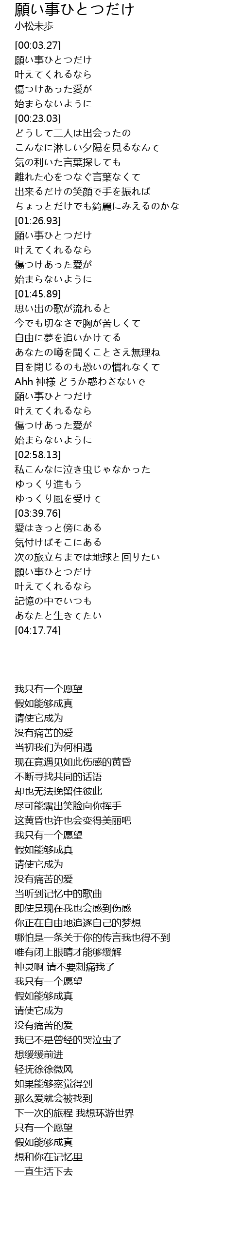 | [03:59.53] | 願い事ひとつだけ |