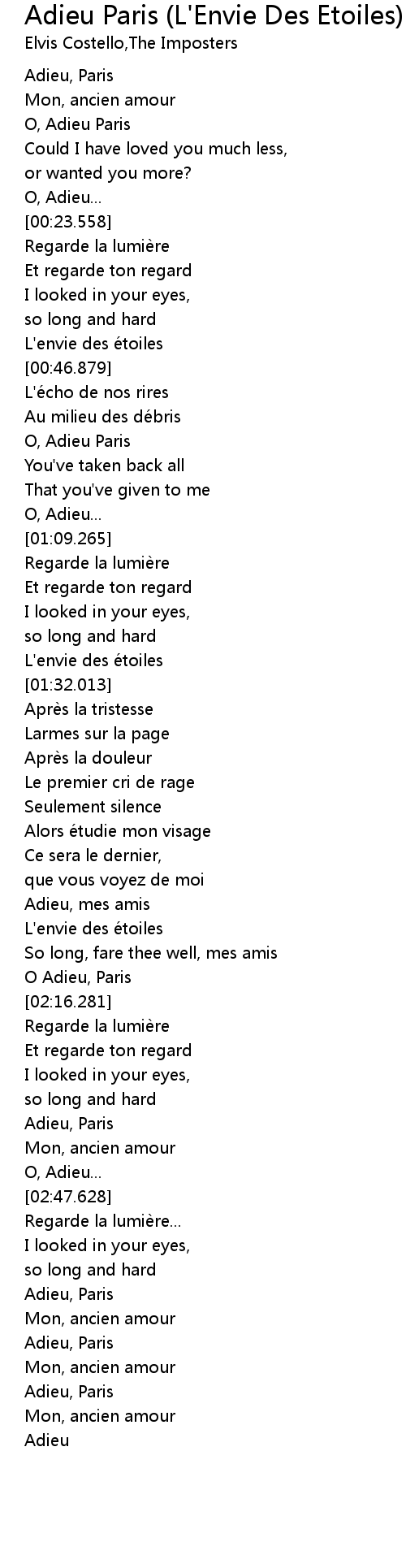 | Song | Adieu Paris (L'Envie Des Etoiles) |