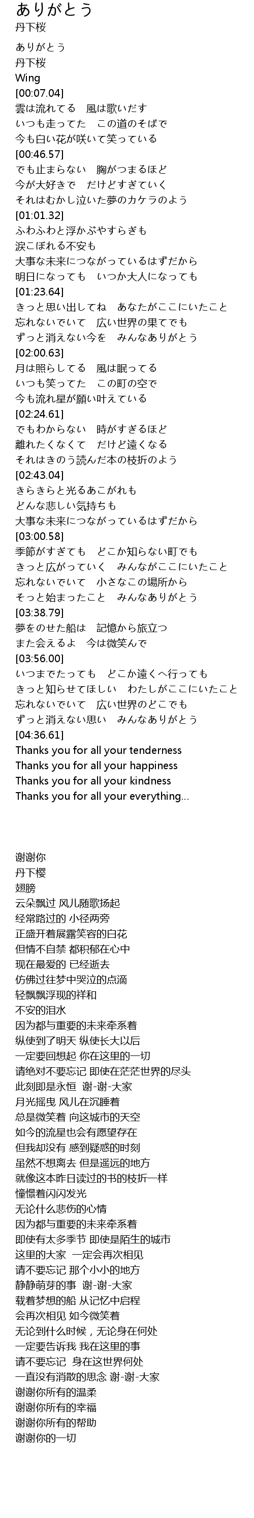 | [04:24.77] | ずっと消えない思い みんなありがとう |