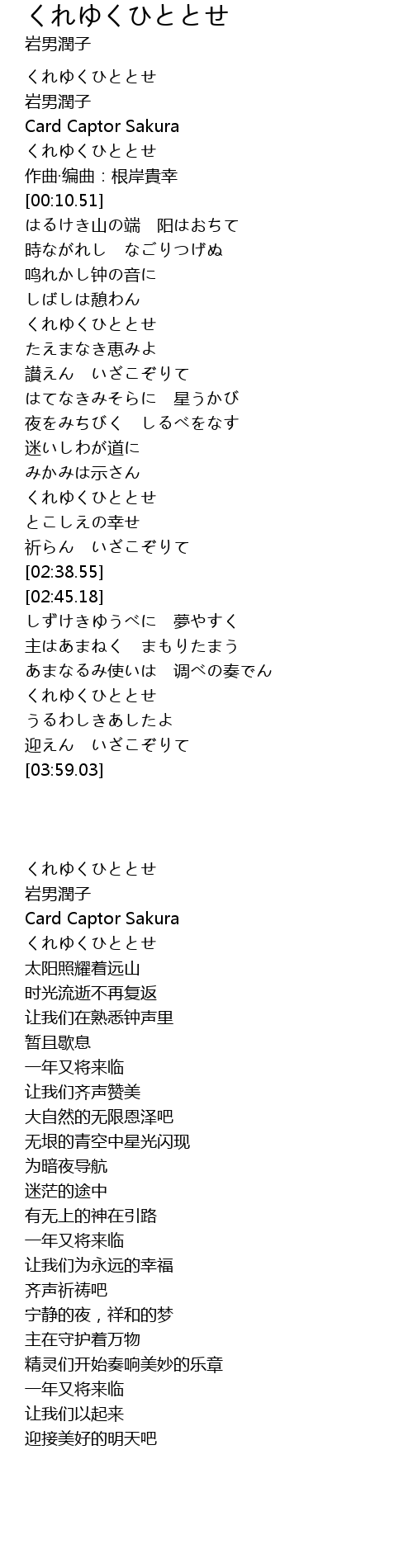 | [03:32.49] | くれゆくひととせ |