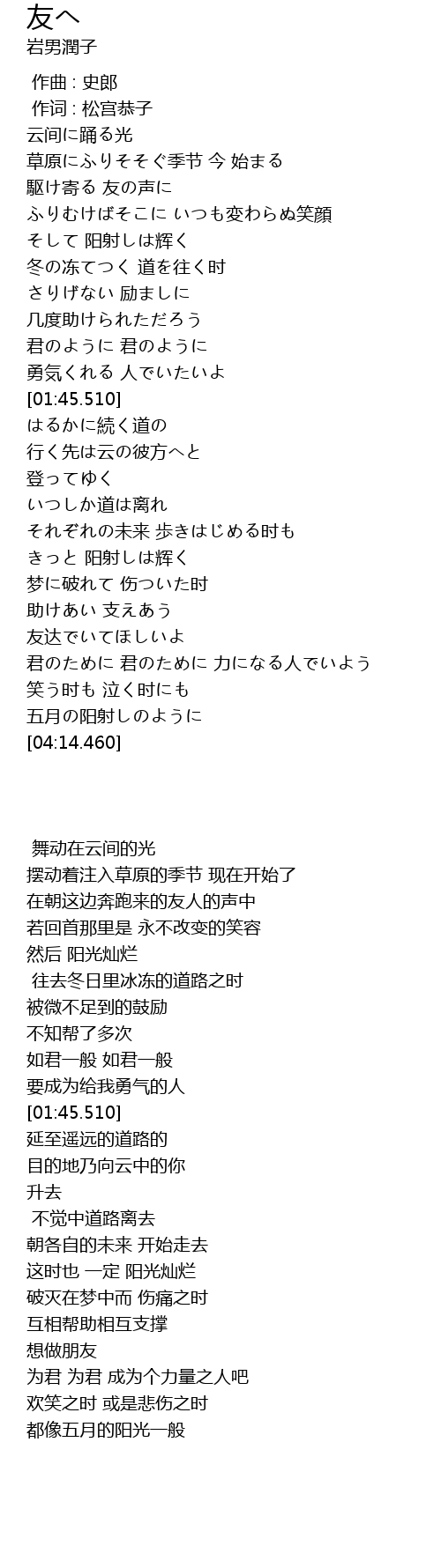 | [03:22.680] | 君のために 君のために 力になる人でいよう |