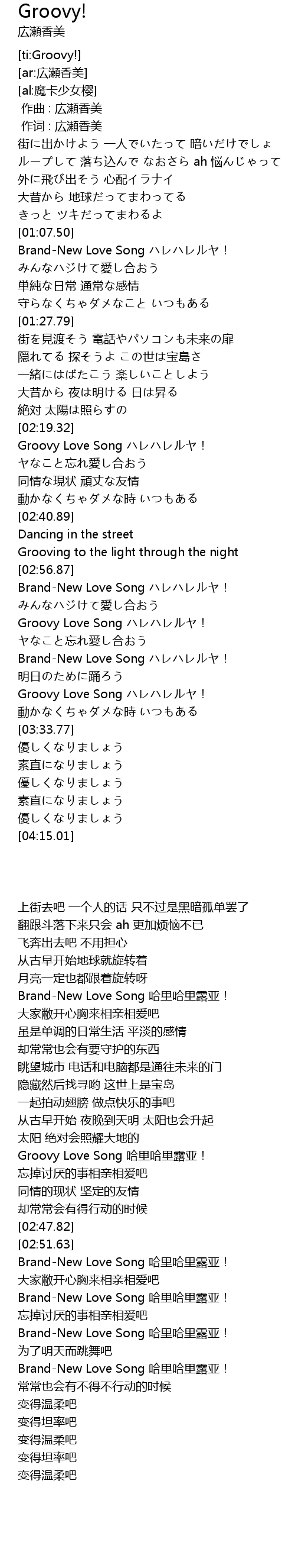 | [02:20.61] | Groovy Love Song ハレハレルヤ! |