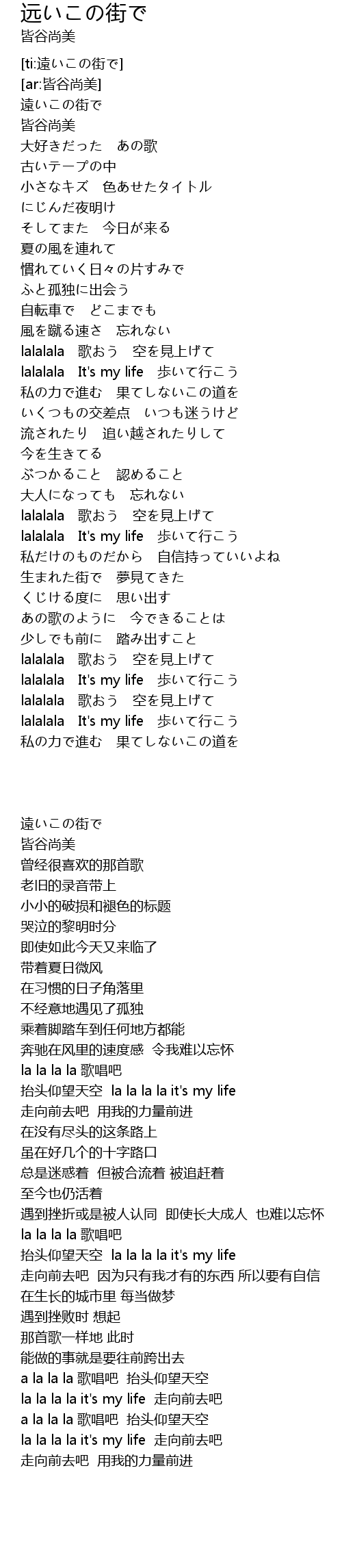 | [04:22.788] | lalalala It's my life 歩いて行こう |