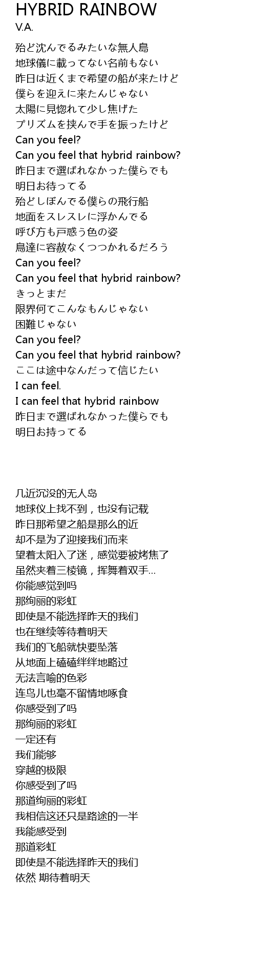 | [01:11.67] | Can you feel that hybrid rainbow? |
