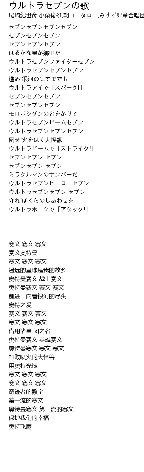 | [01:02.52] | ウルトラセブンセブンセブン |