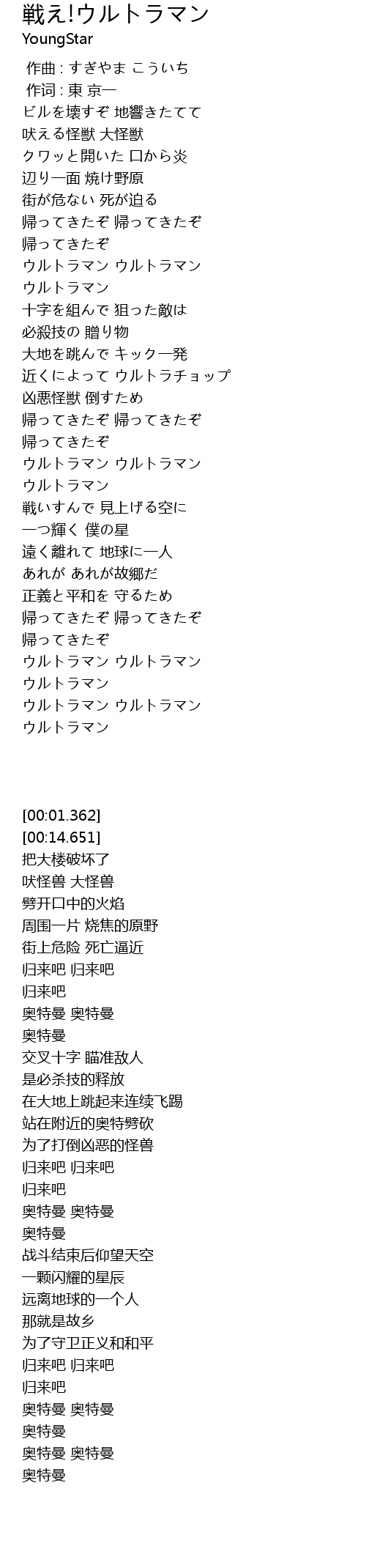 | [01:14.118] | ウルトラマン |