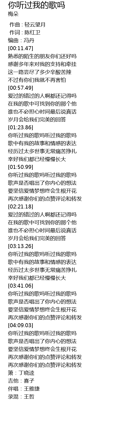 | [04:09.47] | 你听过我的歌吗听过我的歌吗 |