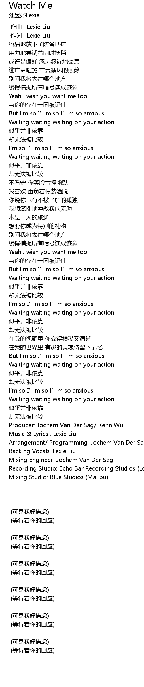 | [00:54.20] | But I' m so I' m so I' m so anxious |