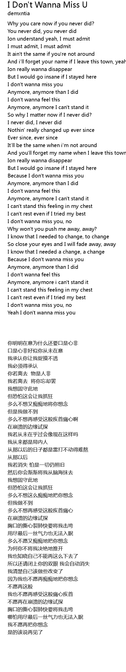 I Don't Wanna Miss U Lyrics